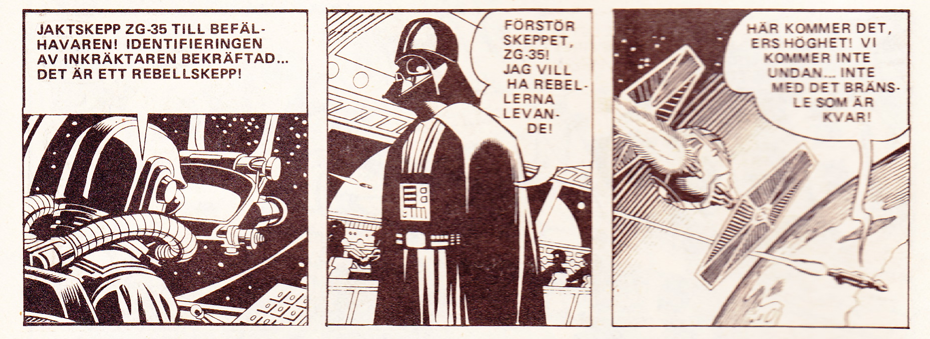 Leia som är på genomresa blir nedskjuten över Phelarion i seriens i särklass coolaste paneler. Den första rutan i den här strippen ovanför är direkt tagen från en konceptmålning av ingen mindre än Ralph McQuarrie. Väldigt coolt och seriens höjdpunkt.