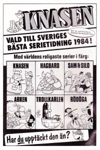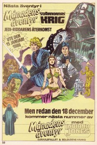 Reklamen den här gången är för tidningarna Knasen, Tom & Jerry och Fantomen. Mer intressant är att det här är sista numret i kontinuiteten före Jedins Återkomst (eller Jedi-Riddarens Återkomst som det står här) … Hmm konstigt. Det här är en liten luring för det är inte filmadaptionen som det antyds här, den gavs ut i albumform redan 1983. I Månadens Äventyr Nr 1 1986 tar handlingen vid direkt efter Jedins Återkomst. Om filmadaptionen återutgavs 1985/86 så har jag hittils inte hittat någon sådan utgåva, men det betyder inte att det inte hänt så klart.