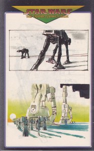 Efter omslagen hittar vi, precis som i förra numret sex sidor med konceptkonst. Vi serveras här några riktigta superklassiker, konceptskisser för AT-ST, AT-AT och Boba Fett. Lovely! Flera av bilderna tillskrivs dock felaktigt John Mollo. Det är istället den fenominale designern och senare filmmakaren Joe Johnston som är upphovsman till de flesta av dessa och så är där en Ralph McQuarrie-skiss.