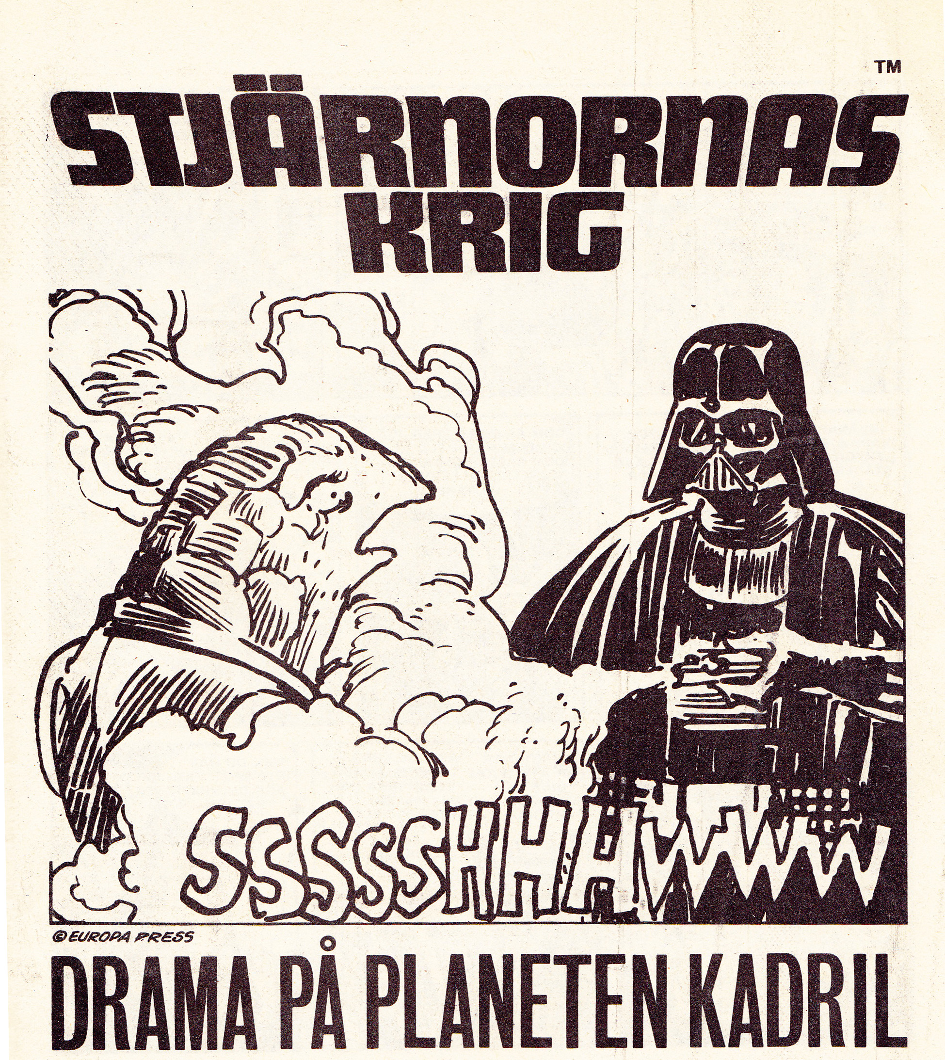 Som ni kanske minns så fick Russ Manning sluta teckna Stjärnornas Krig serier när han blev för sjuk. Hans assistent Alfredo Alcala tog över och det här är det första hela numret som han gör. Stilen är så klart åt Manning-hållet men linjerna är långt från så rena som vid Mannings hand och det innehåller ganska mycket av sånt som jag brukar sätta upp på knaskontot. Alcala verkar till exempel ha haft lite svårt att komma på nya rymdskeppsdesigner, det mesta är flygande tefat inspirerat. Men det som sticker ut mest på de här rutorna är de här riddjuren som Kadrilerna har. De får inget namn i serien, men vi kan väl kalla dem Hippo-taun-tauns kanske?