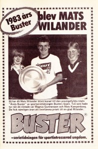 Reklamen den här gången är för serierna Svenska MAD, Modesty Blaise i Agent X9, Jeremiah i Fantomen och på baksidan – Indiana Jones. Buster meddelar också att 1983 års Buster blev… trumvirvel… en mycket ung Mats Wilander!