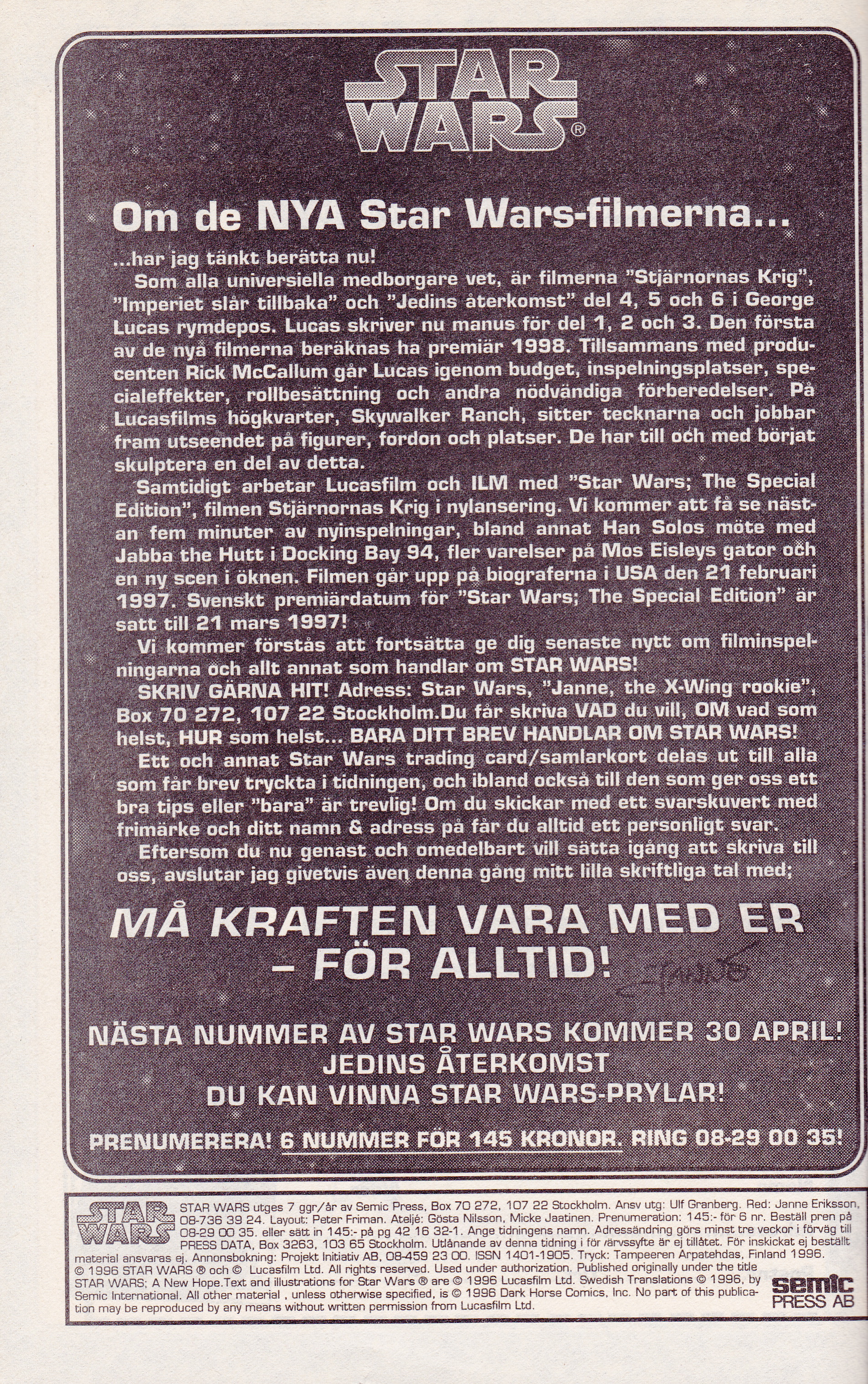 Krönikor om svenska Star Wars serier